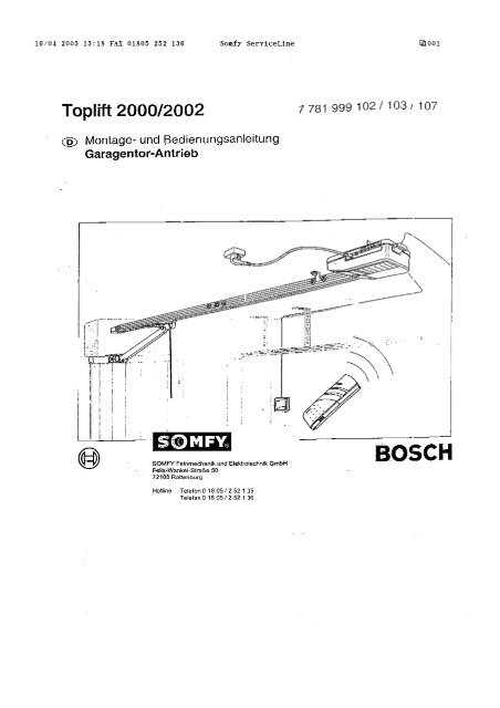 Diese Anleitung mit diesen Anweisungen ist aufzubewahren. Der erste Antrieb mit 50 kg Zugkraft unter 80000 DM von der Firma BOSCH entwickelt und mit einem Designerpreis ausgezeichnet. Bedienungsanleitungen und mehr im Downloadzentrum.