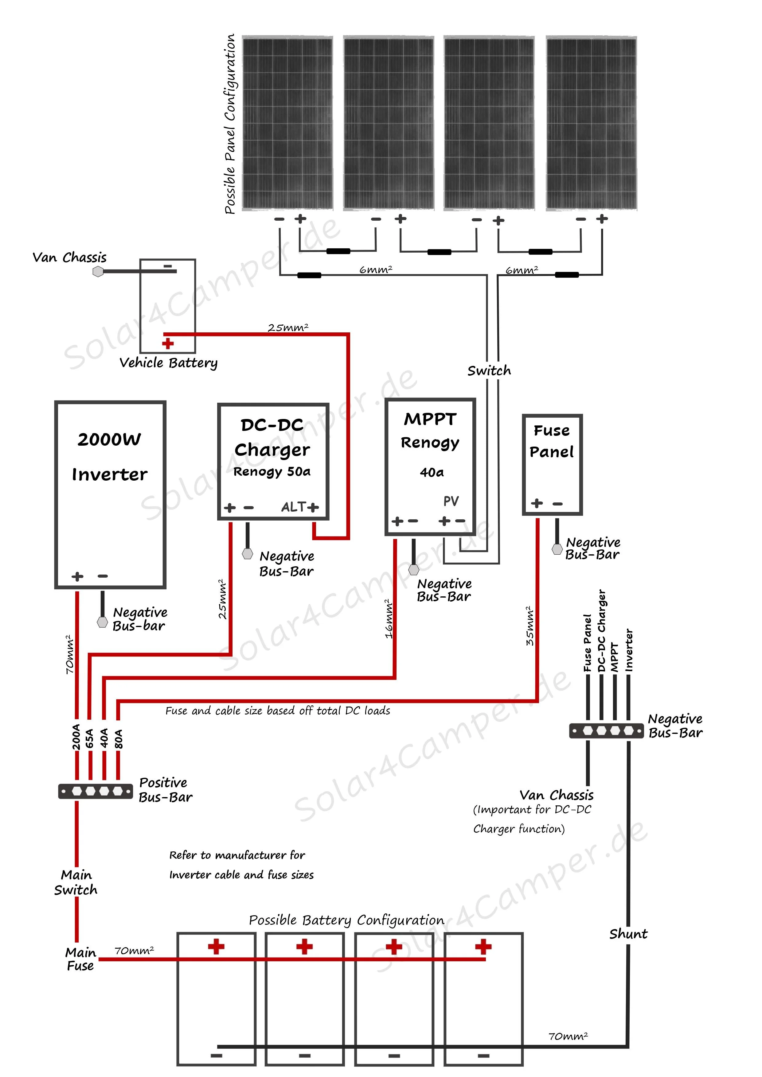 Auch hier können wir wieder eine Faustformel anwenden. Dieser Teil unserer Serie zum Thema Bordelektrik widmet sich dem Anschluss von Ladegerät und Lichtmaschine. 12kVA 12V MultiPlus 230 Volt system example with Argo Fet and MPPT.